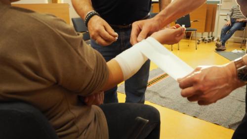 Oefeningenadmin2020-01-05T20:25:11+01:00 Reanimatie met AED Reanimatie met AED Reanimatie met AED Diep genoeg? En genoeg lucht? AED plakkers op de juiste plaats? Een van onze AMBU-mannen Baby-reanimatie Onze uniformen, keurig op maat! Verbandleer